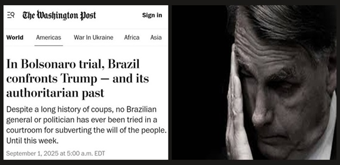 O jornal norte-americano The Washington Post publicou nesta segunda-feira (1) uma análise assinada pelo repórter Terrence McCoy sobre o início do julgamento de Jair Bolsonaro no Supremo Tribunal Federal (STF). O processo é descrito como um marco inédito na história do Brasil, país que já enfrentou mais de uma dezena de tentativas de golpe, mas nunca havia levado generais ou políticos a julgamento por atentar contra a democracia.